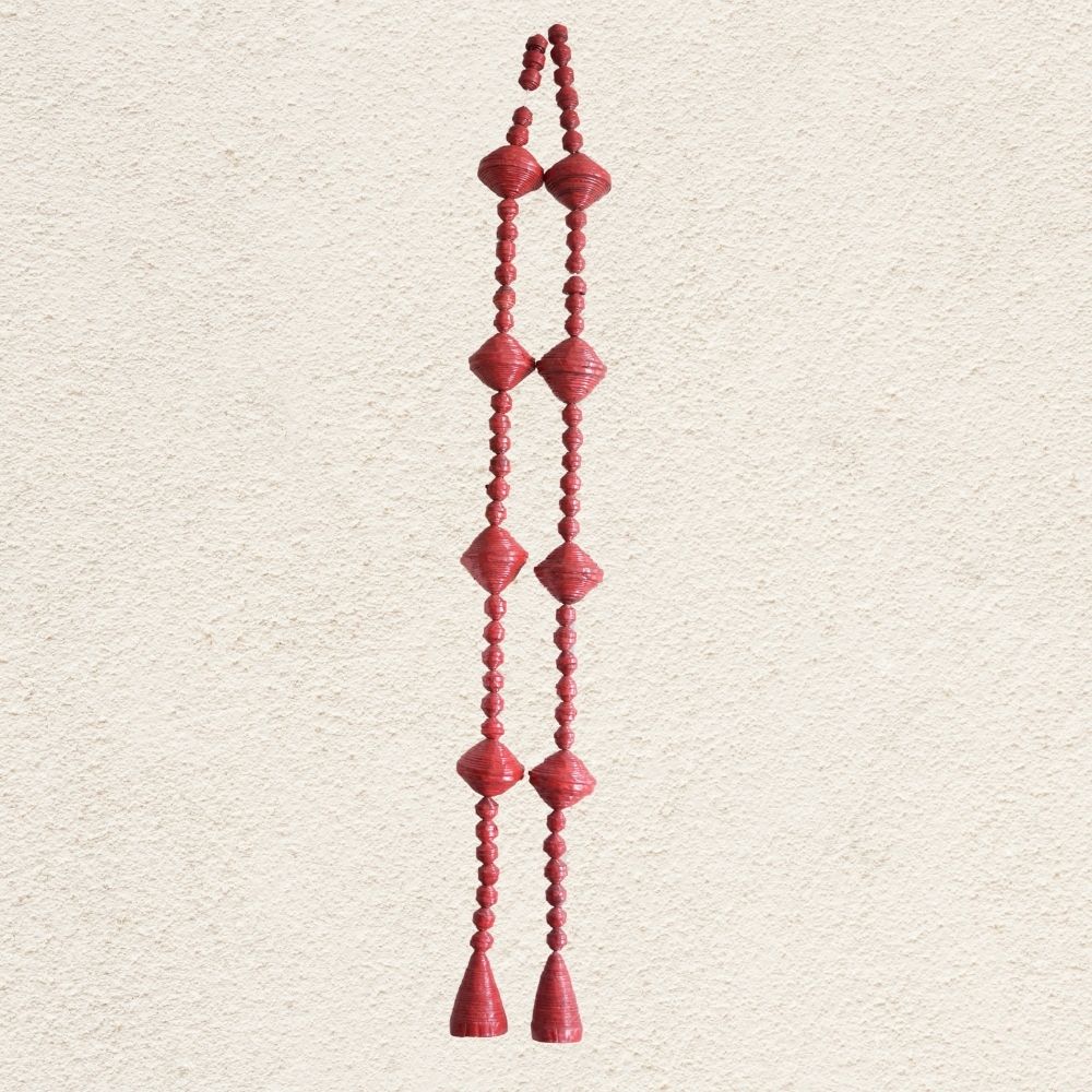 The pair of red door strings is 4 feet and is entirely made from handcrafted paper beads.